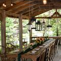 Tall Timber Barn can host weddings from 12 to 115 guests.. Just off the barn porch is the large dining pavilion with a courtyard, a beautifully designed dining space. Set in the forest, Pavilion in the Pines is a dining space for guests, giving the feeling of dining in a treehouse. Chapel in the Pines, ideal for ceremonies, is located close to the barn. The site is fully shaded, with sunlight filtering through the leaves. The venue is seasonal, with availability during the spring, summer and fall months.