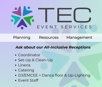 I couldn't have imagined trying to plan all these details separately. Then I found out about TEC Event Services, which provides EVERYTHING: DJ, catering, decor, setup, cleanup, ceremony rehearsal, and the whole wedding day coordination and communication with all parties involved. Their comprehensive services made the planning process so much easier and more enjoyable for everyone.