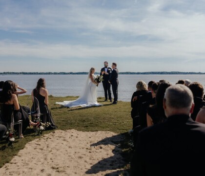 The property is beautiful, spacious, and well kept. The waterfront view was the perfect backdrop for our ceremony (Woody even went out of his way to make an aisle of sand for us to walk down). The cigar shack was awesome and the barn was also set up for me and my groomsmen to get ready and hang out until the big moment (they especially enjoyed the darts, ring and hook, and bar with a kegerator). My family and I were very happy with the rooms which were spotless, comfortable, and included refrigerators/kitchenettes. My wife was very happy with her space to get ready, especially with Michelle doing everything she could ensuring the girls had what they needed and making sure everyone was stress free!