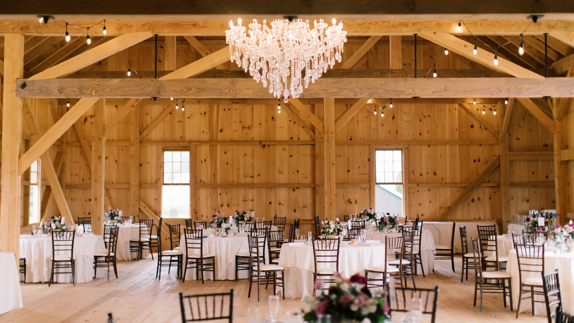 The BigMount Lodge is committed to excellence both as a stunning venue space and with the services we provide. Built by the Amish of Lancaster County, Pennsylvania, the newly reconstructed barn features exposed beams, elegant yet rustic chandeliers, and enough space to seat up to 130 guests.