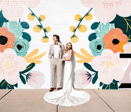 The venue is so beautiful for a winter wedding, very cozy but still spacious. We took a lot of photos outside, and it looked so beautiful with a little bit of snow on the ground! We also loved the mural on the side of the building for photos.