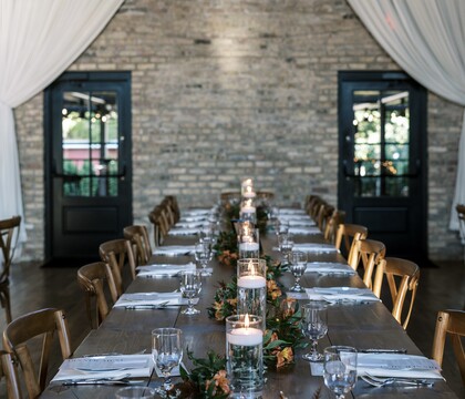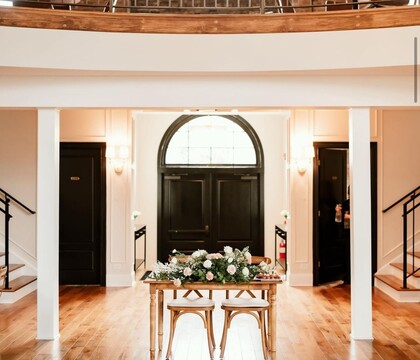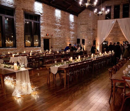 This romantic venue offers a selection of exquisite spaces for you to host your momentous occasion. Boasting classic American architectural features from vaulted ceilings to original brick walls, this venue provides a stunning backdrop for an unforgettable celebration. The District has an English basement where you can find a luxurious get-ready room and a full catering kitchen. The Grand room offers a 3000 square foot space where you can host a lively reception of dancing, and your choice of entertainment. This beautiful area opens to an equally spacious sheltered patio that can be used year-round for an outdoor soiree. A private alley offers a place for food trucks and games or can be used as an additional space for your wedding celebrations.