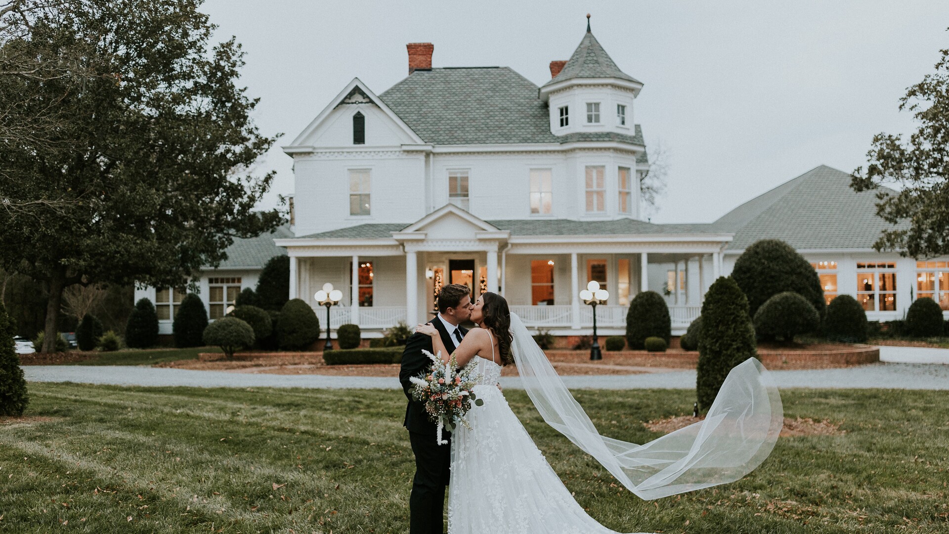 The Grande Victorian is a stunning 1884 historic estate venue in Monroe, NC, available to host your dream wedding day. The mansion spans 12,000 square feet and sits on six acres of land, offering endless photography opportunities on your day. This beautifully restored home exhibits meticulous attention to detail from the inside out, making it a charming space for all kinds of celebrations.