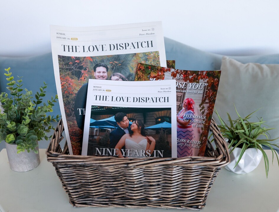 Then comes the magic. All of those interviews, observations, and moments become a custom magazine or newspaper-style keepsake—a beautifully designed, professionally printed publication that reads like a feature in your favorite tabloid. Something you'll reach for on anniversaries, something your kids will discover someday, something that preserves not just what happened, but what it meant.