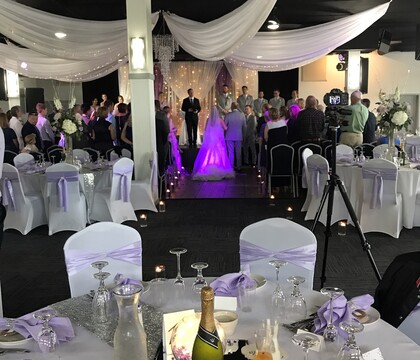 On the wedding day I arrived early and was able to get into my room to get ready, and let me tell you it was huge! It was so spacious and nice for us all to get ready. The guys were across the hall and their room was nice, as well. The other vendors (band and cake) were already there and setting up and let me tell you, I was totally blown away on how the room looked and how much it was right on my vision. Becky even talked to each vendor and coordinated everything with them prior to. As the time came Becky was there EVERY step of the way, she ran everything herself and had it run smoothly. They were so accommodating to my husband and I all night making sure we were fed, always had drinks if needed and to just check to make sure we were happy and there wasn't anything else we needed. At the end of the night I could not be more thankful and happy how everything turned out. You always hear of stories of things going wrong during the wedding. Not one thing went wrong or happened before or during our wedding. It went smoother than I could every have imagined and it was all thanks to Becky and her crew. The only thing that I wasn't the most pleased with was some of the young food and clean up crew were a little unmotivated and were heard complaining right out in the open and just standing around. But other than that, I could not have asked for a better wedding and planning process. It was so beautiful.