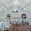 You and your guests will be able to enjoy a cocktail hour on the wrap-around porch, a relaxing area steeped in 19th-century charm. Looking out over 51 acres of rolling countryside, you can watch the sun set and toast with up to 150 of your nearest and dearest. In the Crystal Ballroom, guests can take in its Swarovski crystal chandeliers and the room’s elegant all-glass structure. This sophisticated venue also boasts 2,400 square feet of event space outdoors beneath a covered pavilion, where you can dance along to your musical entertainment.