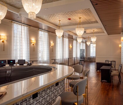 Elevating the art of cocktails while transporting you to a simpler time, Thompson's Bookstore was designed by two bartenders to welcome newlyweds while reflecting a prohibition-style vibe. Whether it's a ceremony, reception, or both, the open layout makes things flexible when arranging seats and customizing the space. You have the choice of renting out sections of the building or booking the entire venue, depending on the size and scale of your wedding celebrations. The Event Level offers a warm and sophisticated setting, an elegant and comfortable ambiance, and tastefully designed interiors where your family and friends can mingle and celebrate your nuptials. Additionally, the expert coordinators at Thompson's Bookstore will work with you from the first meeting until the final dance on the big night. Whether it's decor, catering, lighting, or entertainment, they will curate every detail to ensure you and your loved ones experience a moment in time they will remember forever.