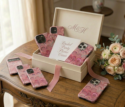 The cases crafted by Thrive Creative are stylish, bringing your wedding party together with designs that evoke Italian elegance. Think sun-kissed villas, marble textures, and delicate terrazzo detailing. They're created to look great in wedding photos, flat lays, and content captures, keeping your wedding party in sync for all your wedding snaps.