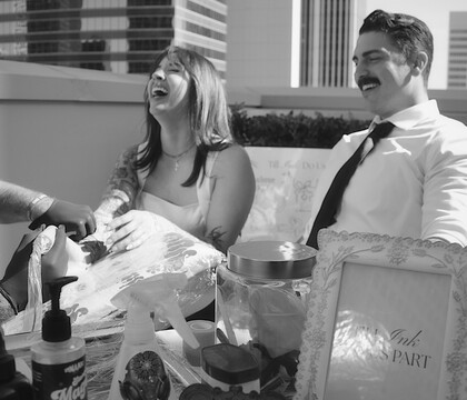 You and your partner may select from a wide range of wedding tattoo services and packages. The Vow Set provides a couples-only service, where you two will sit for a pair of personalized tattoos inspired by your never-ending love. Alternatively, the Ever After Package includes a live tattoo station at the reception, where guests can choose an elegant design to celebrate the uniqueness of the day. The Destination "I Do" collection combines both services and is the ultimate package for the perfect destination wedding. Which one best matches your needs? Contact Till Ink Do Us Part and let the experts guide you.