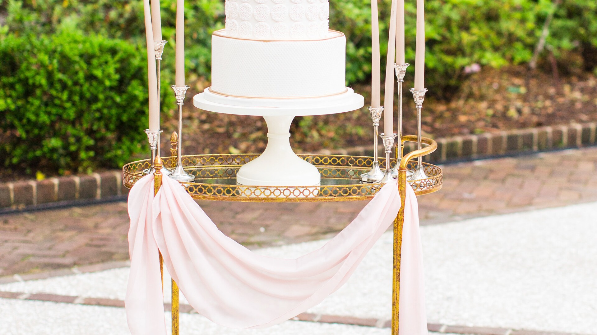 We decided on a 3-tier cake with a different flavor for each layer, we also had 3 little satellite cakes that we could just use for extra slices, with one of them being just for the bride and groom (we wanted to make sure to get a piece!). She also provided the groomscake!
