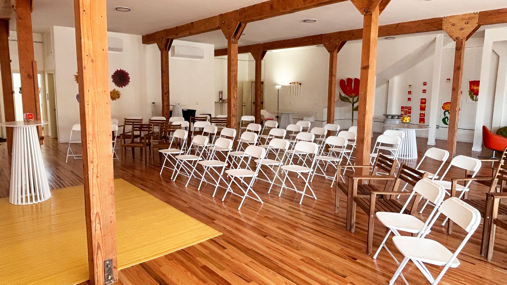 Ven Ven offers 2,200 sq. ft of open event space and can accommodate up to 154 guests for a rehearsal dinner or wedding reception. It features stunning hardwood floors and old-school wooden beams throughout while offering exceptional acoustics for the wedding DJ or band. The staff at Ven Ven will set up the venue, including arranging the tables and chairs, and will work with you from the beginning to ensure everything runs smoothly on the day.