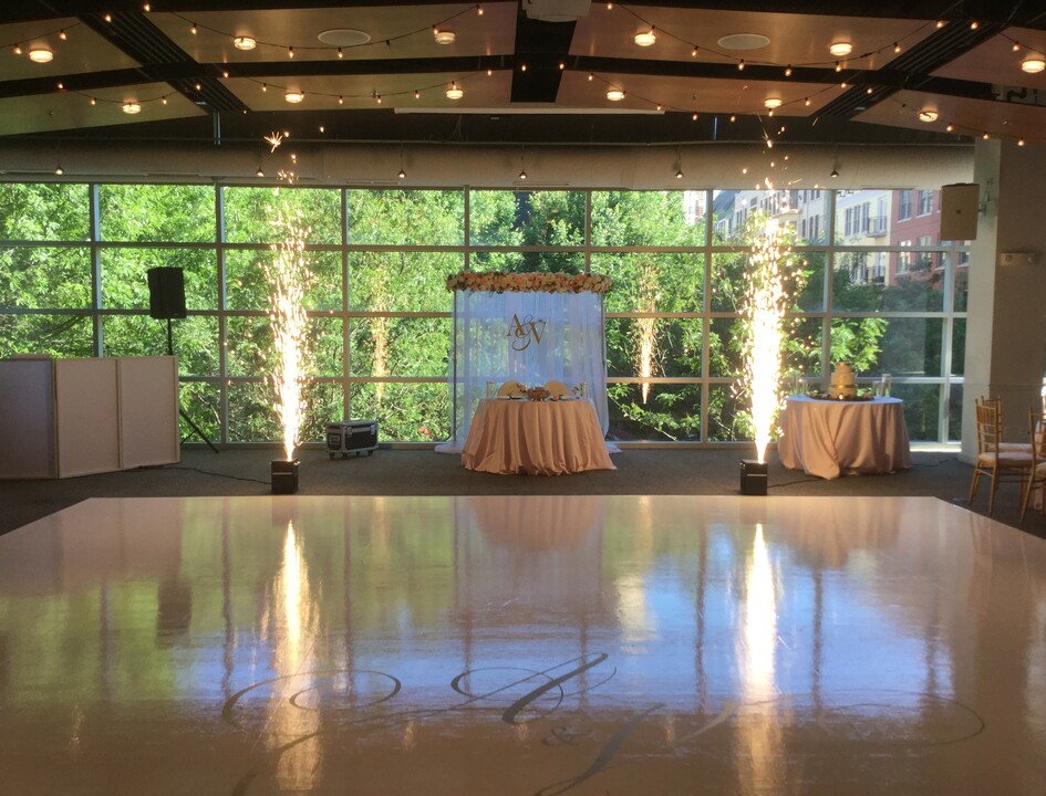 ceiling windows and a GIANT dancefloor. Both Mary and Jackie were a pleasure to work with and made our day perfect. Rockville Town Center is a great location for guests as there is a hotel, restaurants, shopping and the metro are all within walking distance. I am so happy to have found VisArts. We HIGHLY recommend!