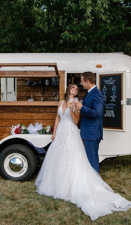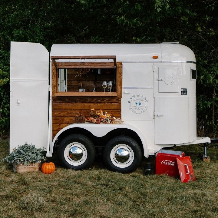 Based in Fort Wayne, IN, Wandering Spirits offers bar and beverage services for weddings and events. This vintage mobile horse trailer bar and bartending services provide a unique and memorable way to serve drinks at your wedding. The beautifully restored horse trailer is a one-of-a-kind addition to any wedding venue, and the team of experienced bartenders will provide your guests with top-notch service and delicious cocktails.