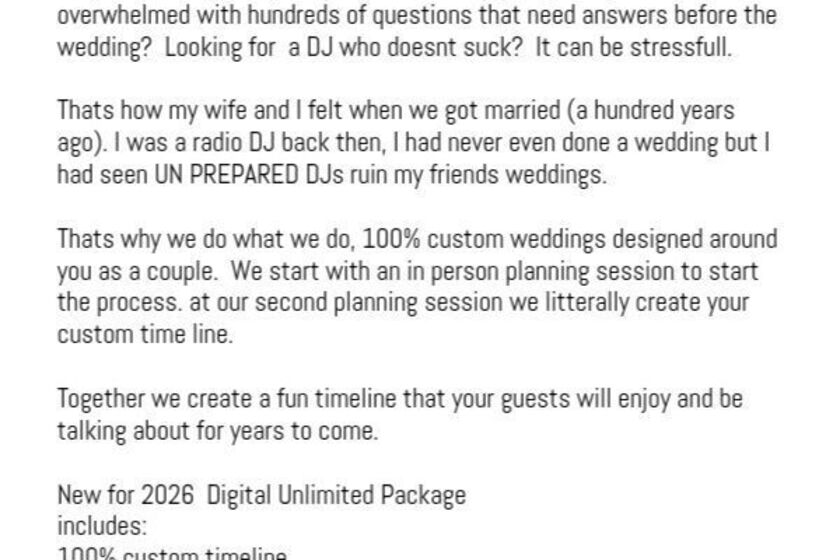 The Party People are a local family owned and operated full time professional entertainment company that offers DJ, Lighting, Photo Fun, Drapery, and Videography services at the highest level to weddi