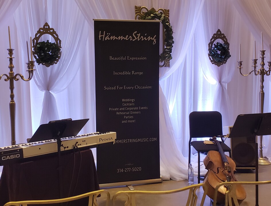 The HämmerString Cello/Piano Duo is a favorite among St Louis couples, with the rich sound of the cello perfectly complementing the piano. The duo plays a complex weave of sounds presenting a huge repertoire of favorites ranging from Bach to Coldplay!