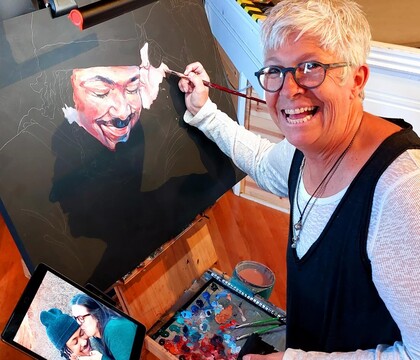I've been painting portraits for over 40 years, after studying at the American Academy of Art in Chicago. You can see my mural and portrait work here.