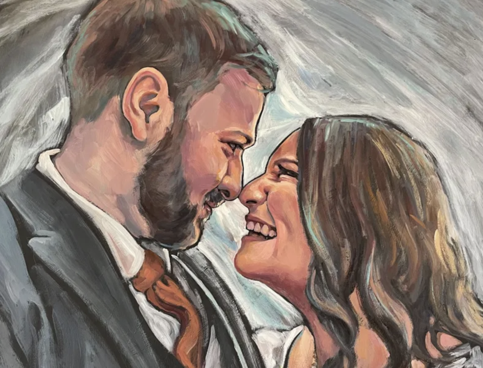 A custom portrait painted live on your wedding day