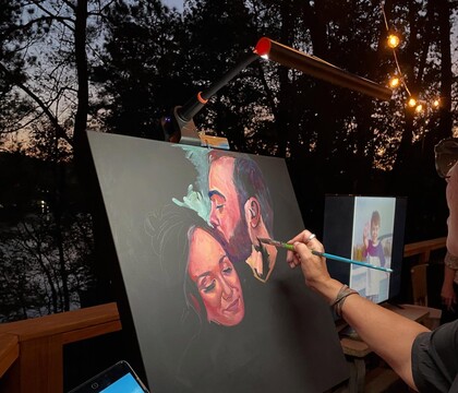 As a live wedding painter, I don’t just create art; I help tell the story of your special day and the connection you share together. There’s something magical about watching a painting come to life right before your eyes, and I love sharing that experience with you and your guests. Your portrait should reflect your relationship in a honest way, capturing what makes your love and your wedding day truly one of a kind.