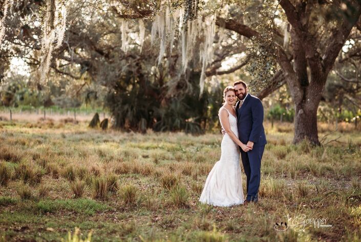 Sunshine Lane Ranch is a countryside wedding venue located in Arcadia, FL. Dispersed around the property are century oaks, ponds, and greenery. There is also a charming barn with majestic horses for g
