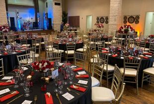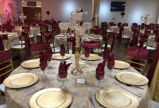 BANQUET ROOM Capacity & Dimensions: Accommodates up to 400 persons with 5,765 square feet, Carpeted with 6 Chandeliers, 33’ x 38’ Parquet Wood Dance Floor. Rental Fees: $1,800.00 [Out of Parish Rate]