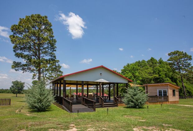 Located 45 minutes away from Panama City Beach, our North Florida wedding venue sits upon 42 acres of working farmland and offers picturesque sunset views over the fields. The 3,600 sq. ft. barn is a