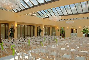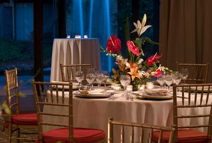 Our spacious rotunda with exquisite glass wall is the perfect location for your reception or ceremony. Look out over our sculpture garden (or rent it & have an outdoor location) as you celebrate your