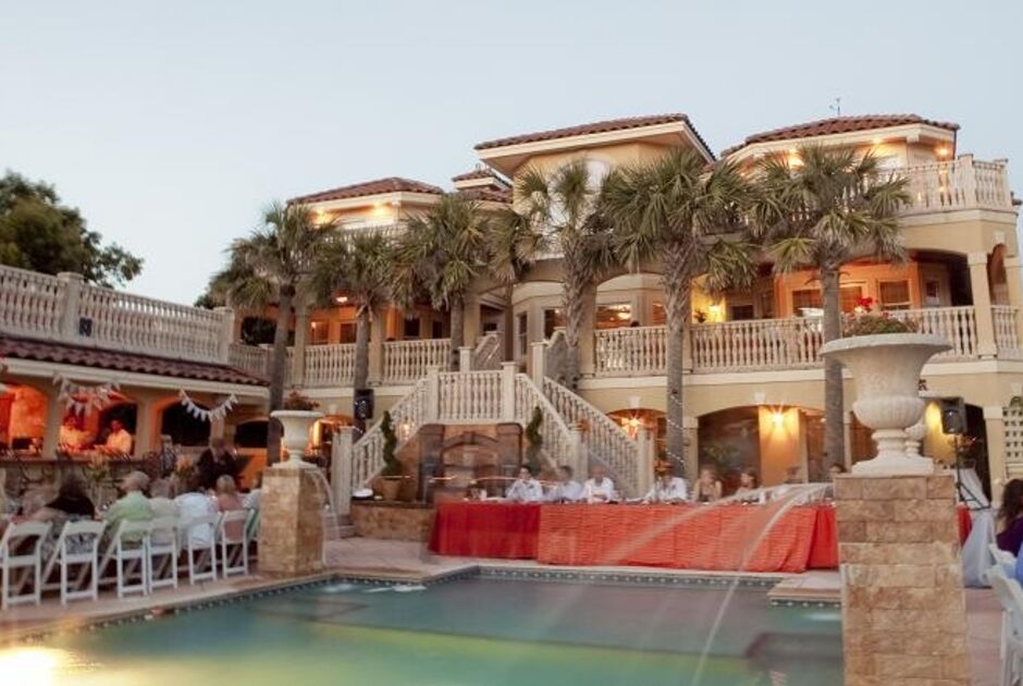 “The Pine Island Lodge” is the perfect retreat for your oceanfront wedding! This home has the capacity to host weddings with as many as 250 guests. Built in 2015, this 28 bedroom is one of the largest