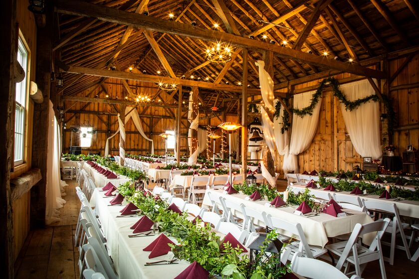 The Farm at Dover is a magical venue featuring a historic, charming, and elegant two-story barn surrounded by 20 acres of scenic flower and vegetable gardens, forest, and meadows to provide a picture-