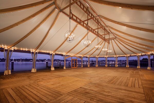 Bristol Harbor Inn & Waterfront Pavilion is a wedding venue in Bristol, RI that offers stunning views of Narragansett Bay and Newport Bridge. The Waterfront Pavilion has a beautifully draped inner lin