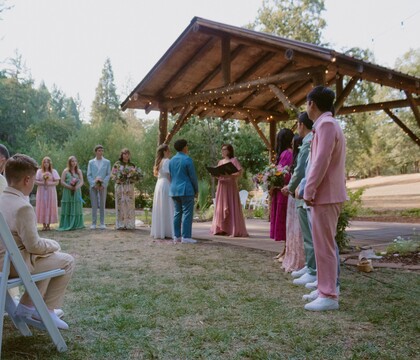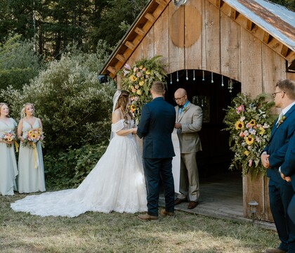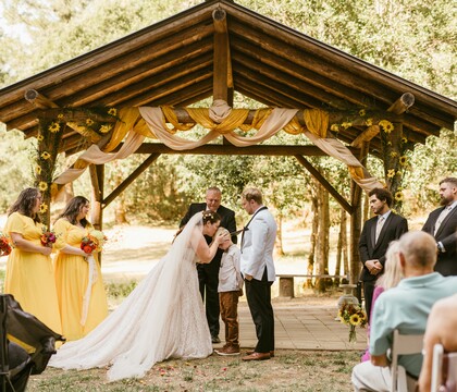 We host full wedding weekends, because we believe your wedding deserves more than a few rushed hours. Your experience includes two nights on the property (Friday at 12pm through Sunday at 12pm), overnight lodging for up to 34 guests in our five cabins, and space for 50 daytime guests (with the option to expand up to 200). All ceremony, reception, and gathering spaces are included, giving you time to arrive, set up, celebrate, and actually enjoy your entire weekend. We can also add camping or glamping to accommodate a few more people onsite.