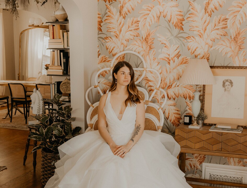 s our last shop on day one of a two-day hunt during which we had to find something off-the-rack due to the short length of my engagement. We were all so delighted to be in a space that was laid back and low-pressure, while also receiving just the right amount of attentiveness and honest feedback. I love my dress so much that I’m looking for any reason to wear it again. I also purchased my earrings here and they were the exact right match for the style of the dress and of the wedding.