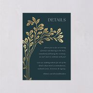 The tree-like motif that scrolls up the side and through the center of this wedding enclosure card is made luxurious by the foil finish. Complemented by simple and elegant typography above and below, it is sure to make your guests excited for your big day.
