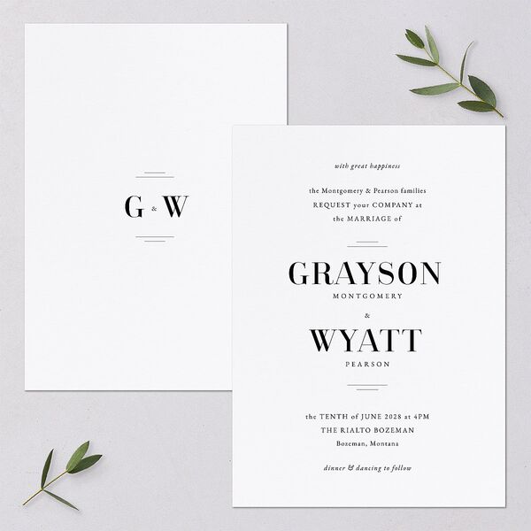 For an extraordinary occasion, the simply classic can speak volumes. Each of these wedding invitation cards shows the invitation message, the names of the couple, and the wedding details in elegant serif typography.