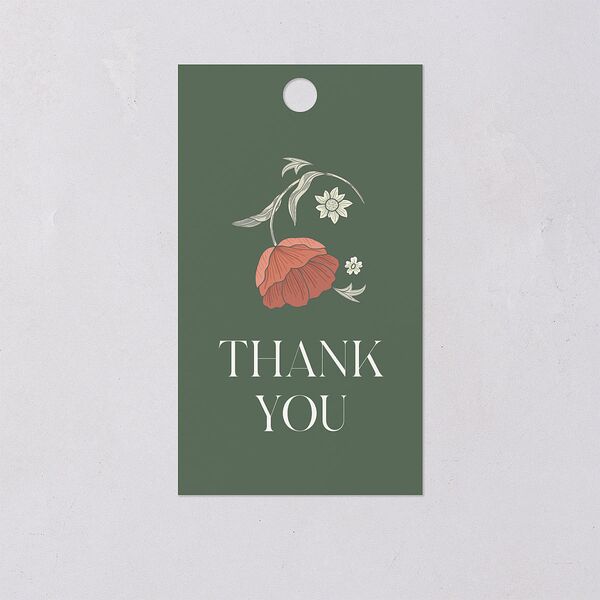 Celebrate every crafted detail with blossoming favor gift tags. These tags are neatly shaped with your message of gratitude and names in the center. On the opposite side, you'll see your romantic heading with a free-flowing flower above.