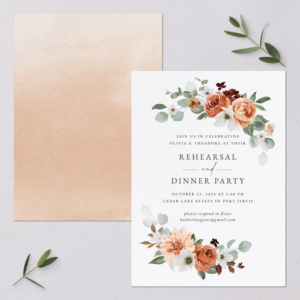 Eucalyptus Bouquet Rehearsal Dinner Invitations