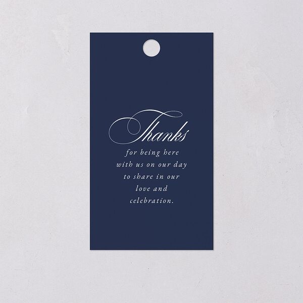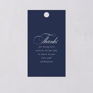 These classic favor gift tags feature your monogram and thank-you message in a mix of looping and formal fonts. Your personalized message appears in white font against a nautical background that will complement your wedding stationery.