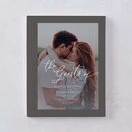 Add a new chapter to your love story with this guest book. Its cover features a photo of your choice as its background, with "the Guests of" appearing in flowing script. Your names and wedding date are printed below this in an understated serif font.