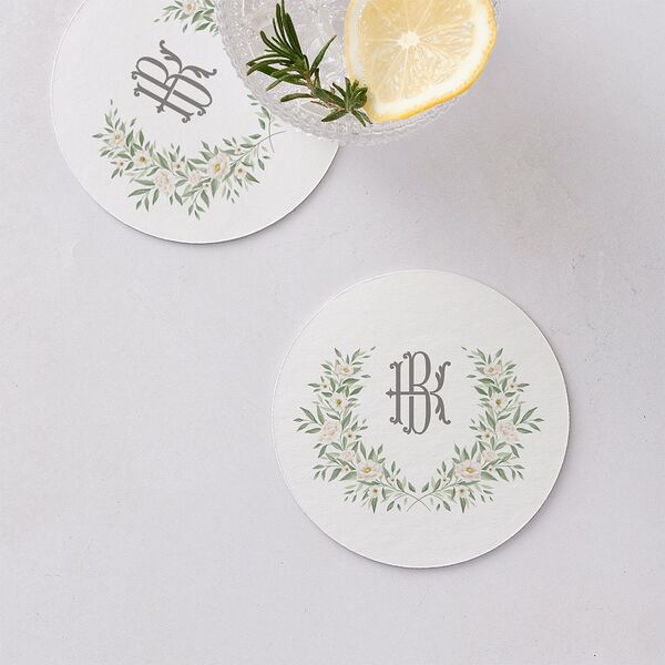 Luxury Floral Monogram Wedding Day Coasters