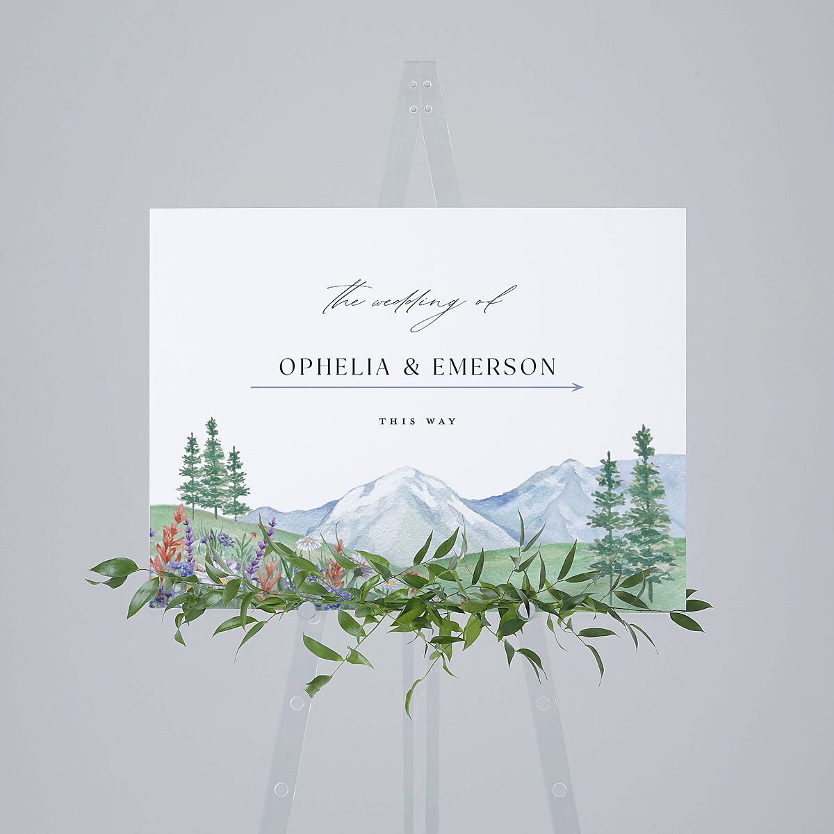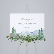 Hand-drawn nature scenes on these directional signs evoke the serenity of a mountain trail in full bloom. Each sign is set against a clean backdrop subtly infused with painted natural elements. Handwritten-style accents and classic serif lettering work together to gently point your loved ones in the right direction.