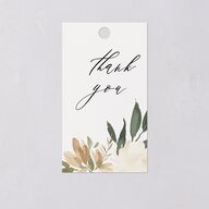 This romantic gift tag can be personalized with a short message thanking your guests for their attendance on your special day. Blending modern lettering with stylish cursive, it features a neutral color scheme and a vibrant watercolor floral display.