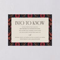 A rich floral pattern frames your event information on this ornate wedding enclosure card. You are bound to appreciate the elegant fonts and lush color scheme.