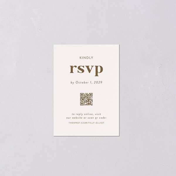 Modern, minimalist, and totally chic, these mini rsvp cards invite your loved ones to respond online. Set against an airy backdrop, neat serif typography presents your wedding website URL alongside a scannable QR code for instant digital RSVPs.