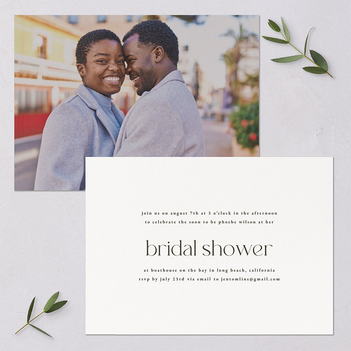 Your favorite portrait greets your guests with this bridal shower invitation, keeping your love story at the heart of the celebration. The important details of your event are presented in a striking modern serif font.