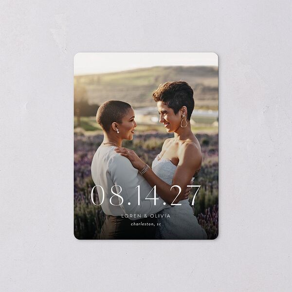 Ensure your guests are ready for your special day with our premium save the date magnets, featuring rounded corners and a magnetic backing so they can be easily adhered to the refrigerator.